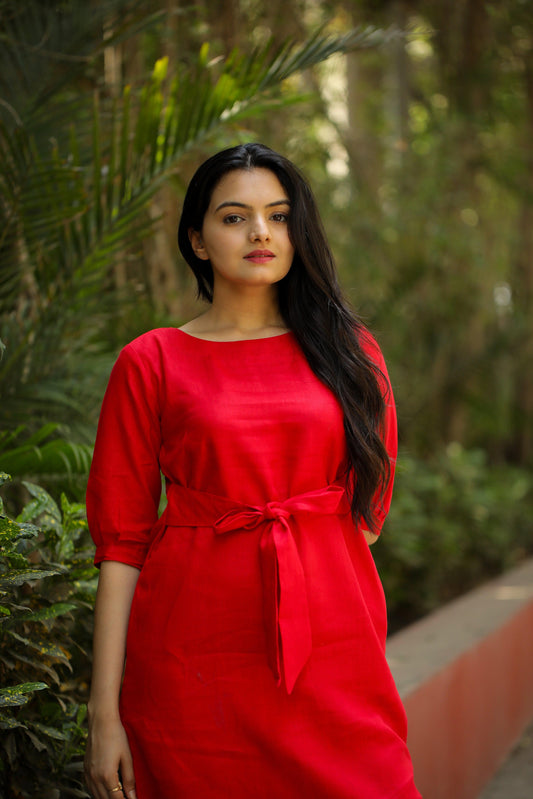 Radiant Red Tie-Waist Dress