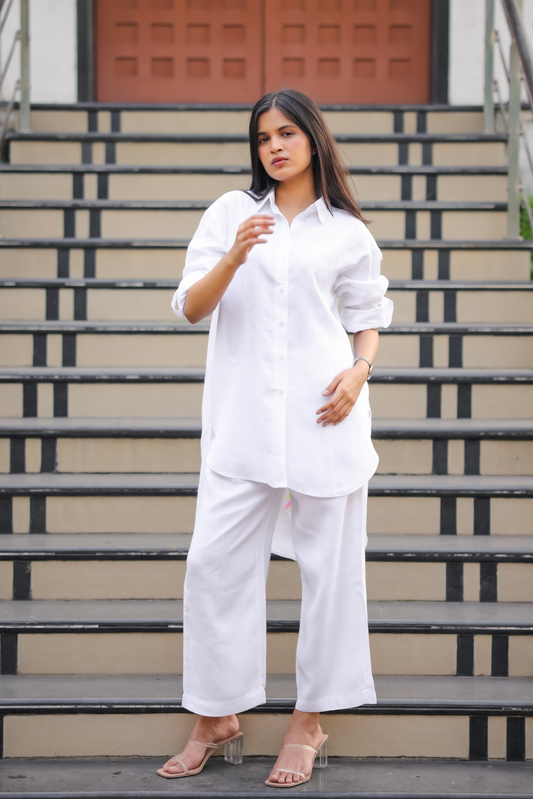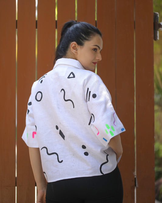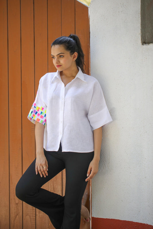 White hand painted shirt.